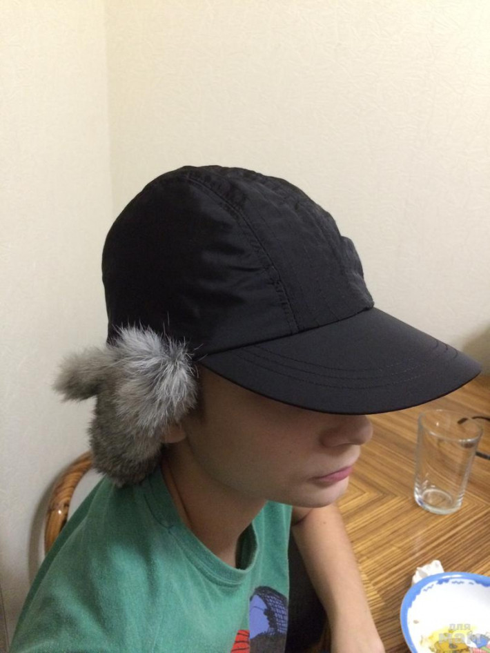 Ушки можно опустить и поднять, тёплая кепка, сняли бирки и не носили...у сына голова узкая, болтается...