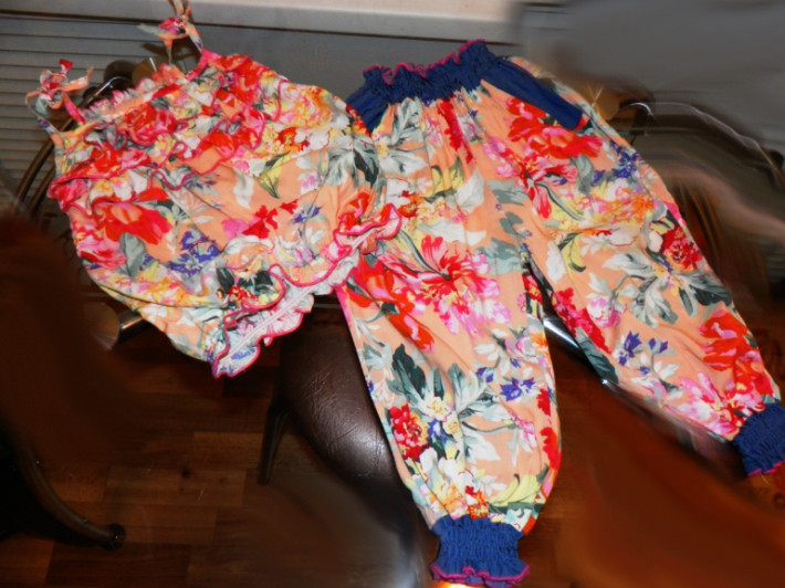 бриджики + топ, можно раньше. будут как шароварчики, супер легкий, самое то на жаркое лето,состояние отличное,без нюансов.