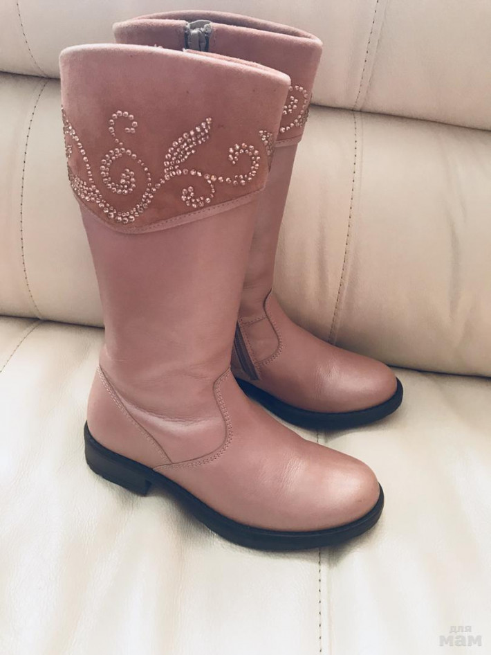 Сапожки новые, шикарные! Пудровый цвет. Кожа на коже.