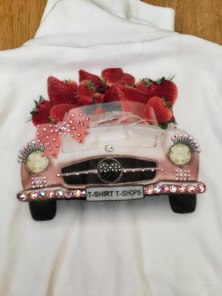 T-Shirt T-Shops (104) НОВЫЙ!!! Невероятно гламурный красивый ооооочень костюм!!! На спинке клубнички в авто!) картинка вся усыпана кристаллами Swarovski