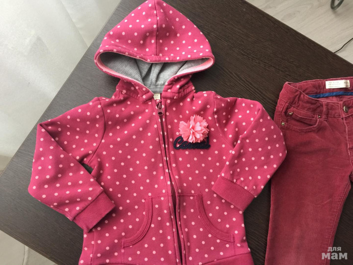 2. толстовка на замке с начесом Zara размер 4-5 (длина по спинке 37см, рукав 34 см) и кордовые штанишки Zara размер 3-4 длина 59-60см, все по 500 руб.