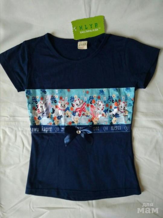 С котиками! ) На рост скорее всего 116-122, на худенькую девочку. 95% хлопок, 5% п/э.