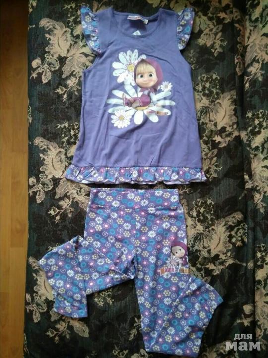 Куплен в ДМ, абсолютно новый, с этикетками. Маша и Медведь. Изготовлено в Узбекистане. 100% хлопок. Длина леггинсов 66 см, ширина в поясе без растяжки 25 см, тянется не сильно - до 28 см примерно.