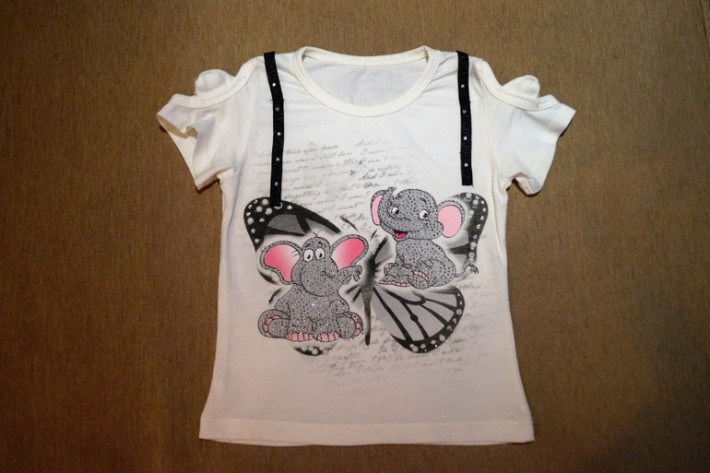9. Стильная футболка. Стразики. Бантики на рукавах. 1,6г-2,7г. Сост. отлич. 500 руб.