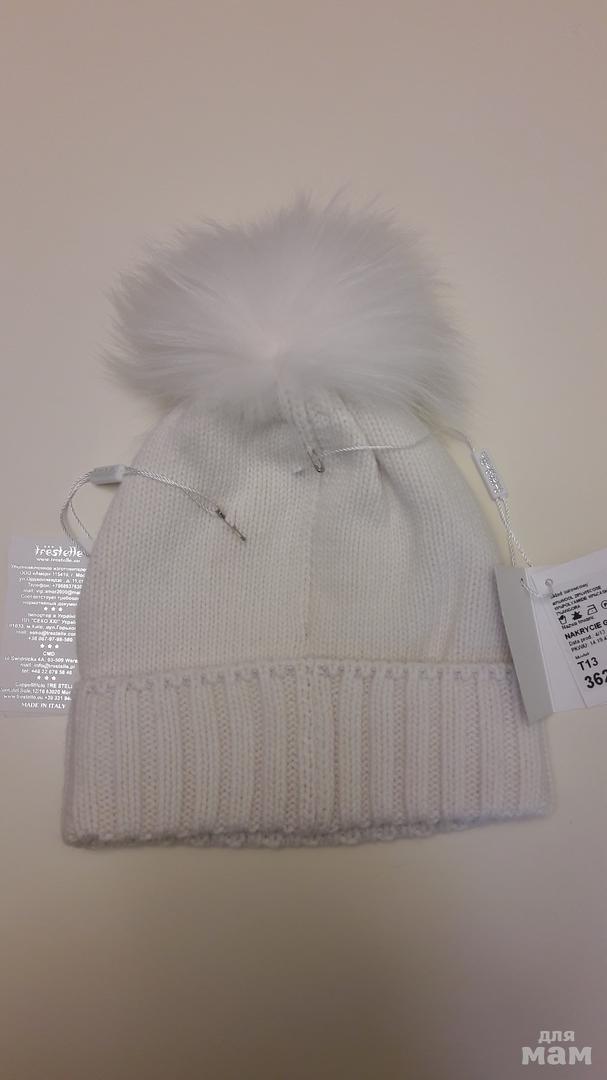 1. Новая шапка Trestelle , цвет экрю, помпон песец(примят, распушится), размер 54-56, украшена стразами и камнями.