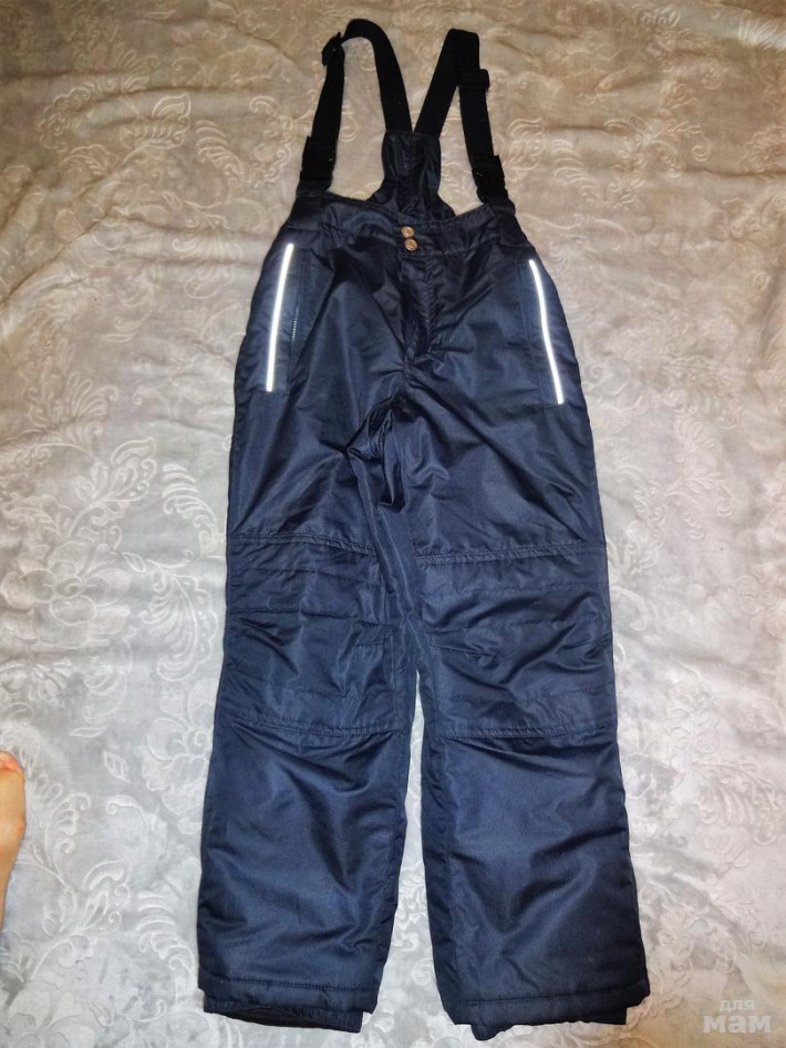 Зимний ,мембранный полукомбез т.синего цвета. Состояние хорошее,дефектов нет. Носила аккуратная девочка. Длина от пояса 80см,шаг шов 58см.