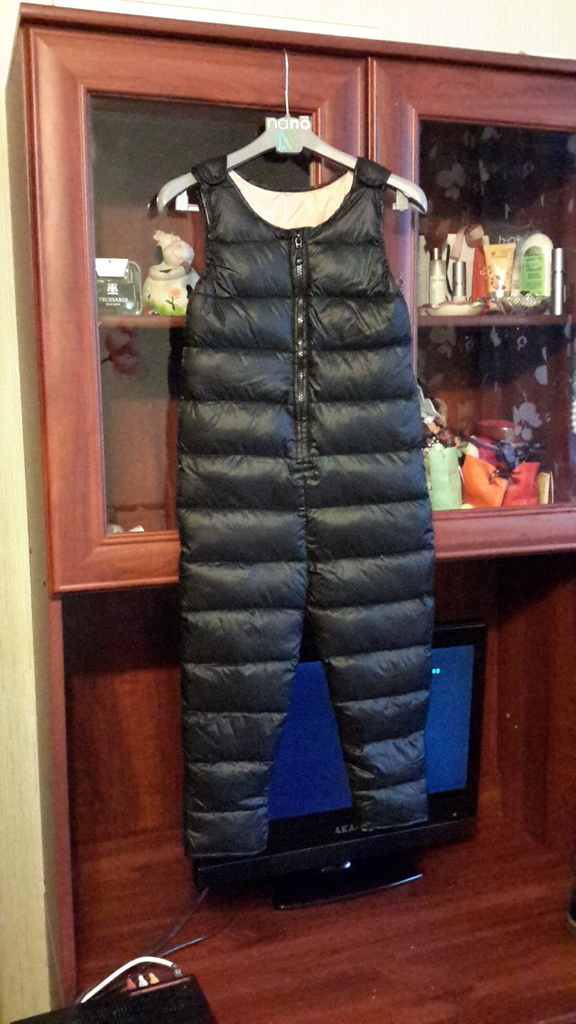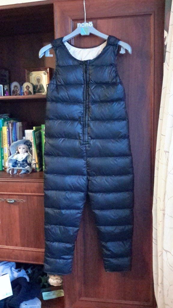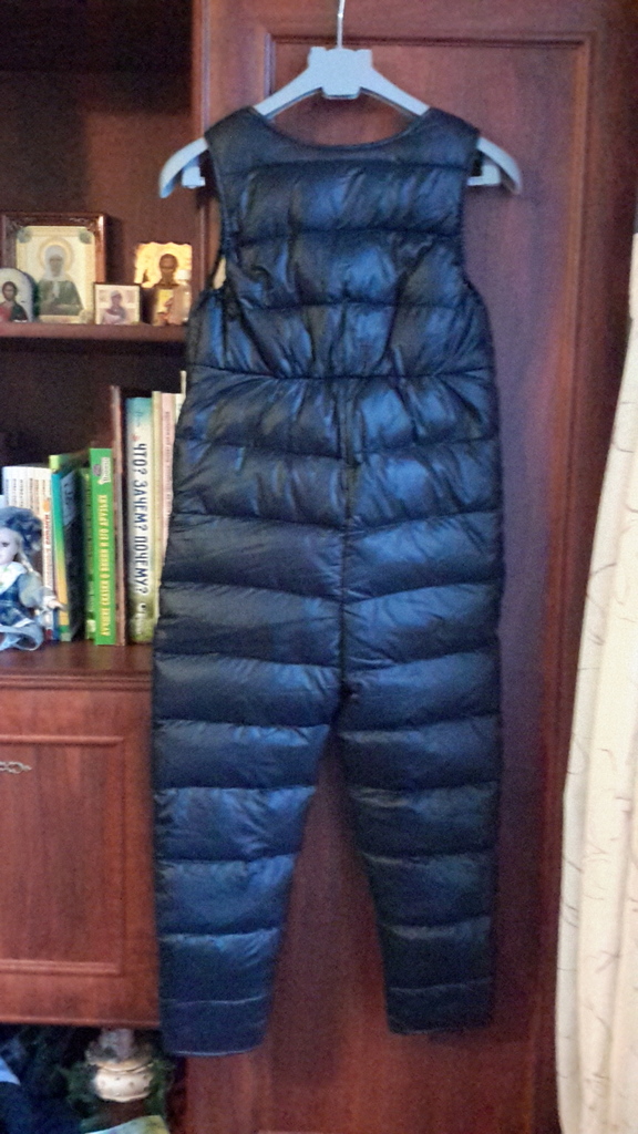 Замеры длина 90-94 (регилируется кнопками), шаговый 38 см (есть снегозащитная резинка внутри), грудь 35. Набит хорошо. Узкие штанины, заправлять только в ботинки (сапоги)
