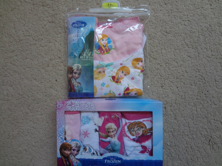 4) Комплект - 2 маечки на тонких бретельках + 3 трусиков и 1 носочки нормальной длины 1000 -1100 руб ДИСНЕЙ