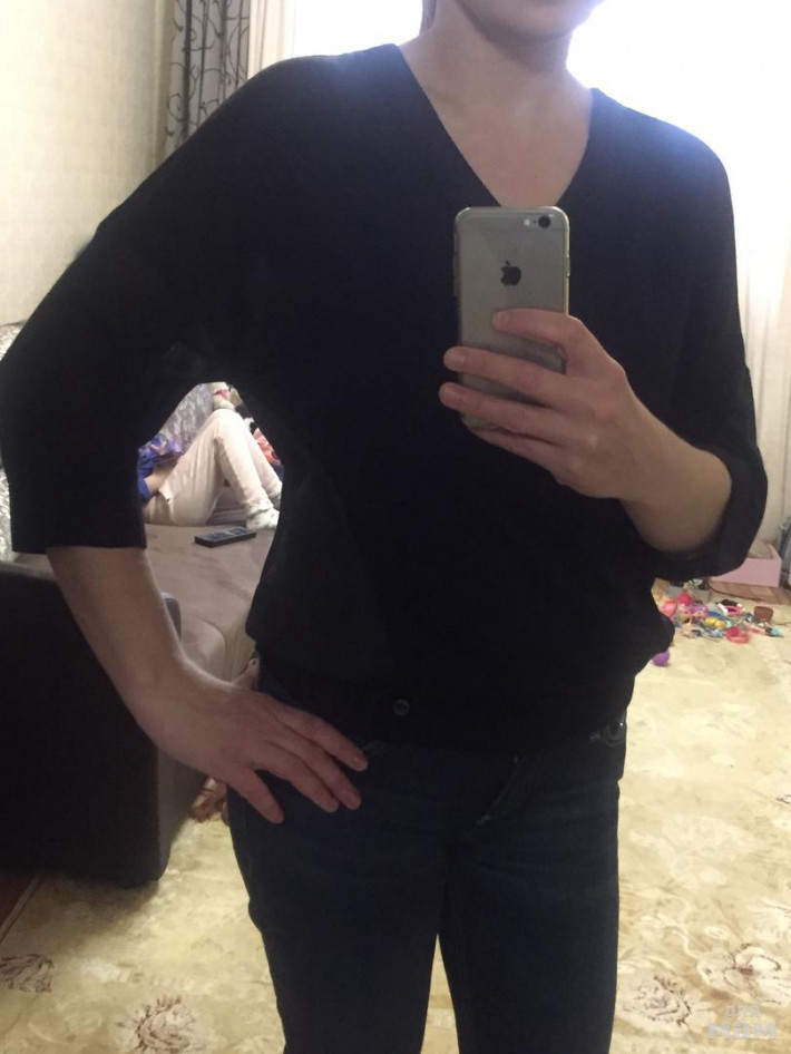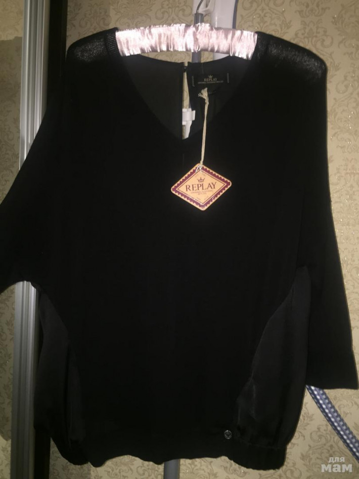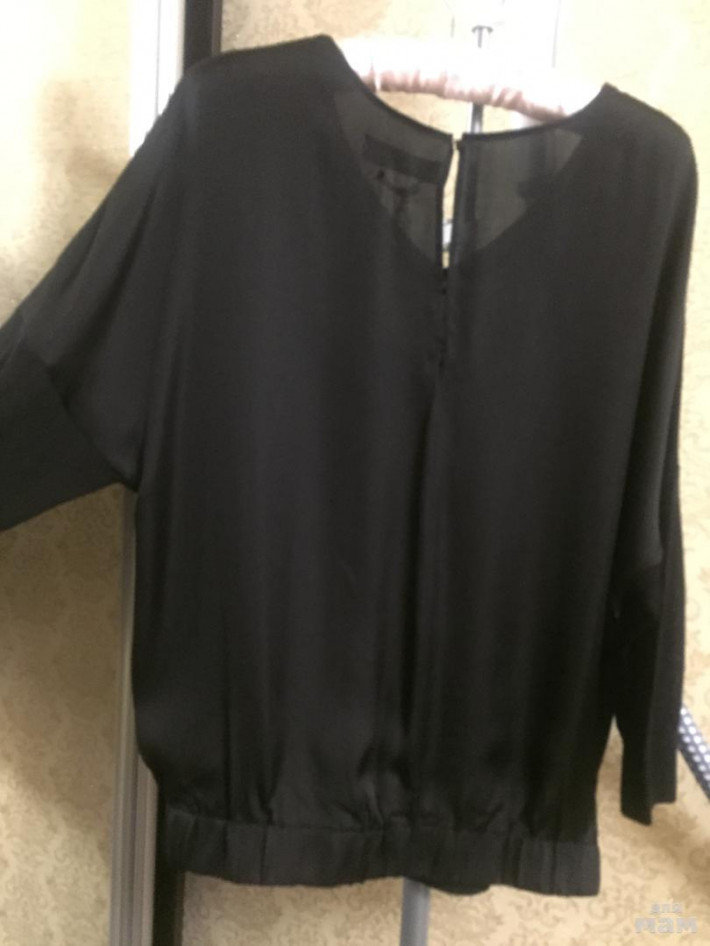 Очень красивая оригинальная! Впереди трикотаж, спинка шелковая, рукав- реглан, крой выгодно скрывает недостатки! Размер указан М, по мне Большемерит. Фото на себе 46 р и рост 174. Отличный натуральный состав- хлопок и вискоза! Куплен в Италии, стоил около 9000