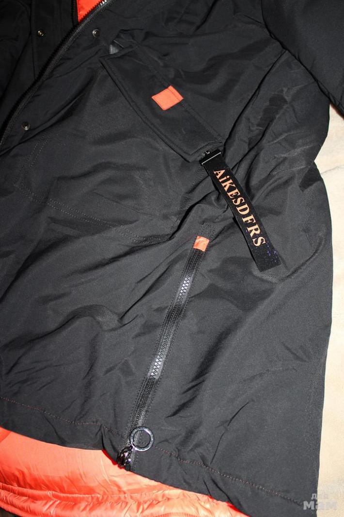 Внизу по бокам куртки молнии