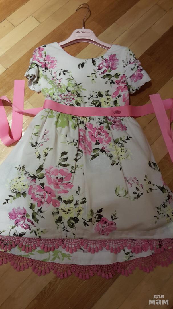 платьице...Расцветка нежнейшая и красивое кружево...фасон юбки спереди короче , а ссади шлейф длиннее..пышный подъюбник, делающий юбку пышной...на спинке вырез...состояние нового...одели на праздник 1 раз...берегли и переросли...