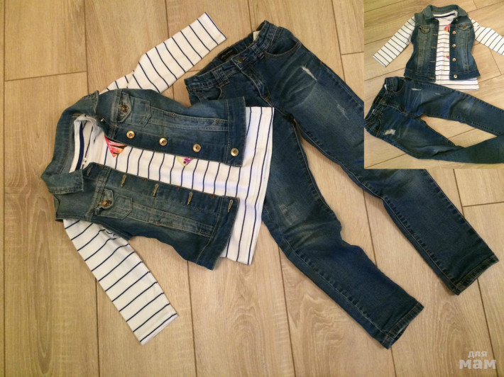 ДД! Нюансов нет. Потертости родные. Джинсики шаговый 55 см, Жилеточка длина 36 см, ширина 32 см. У кофточки рукав укорочен.