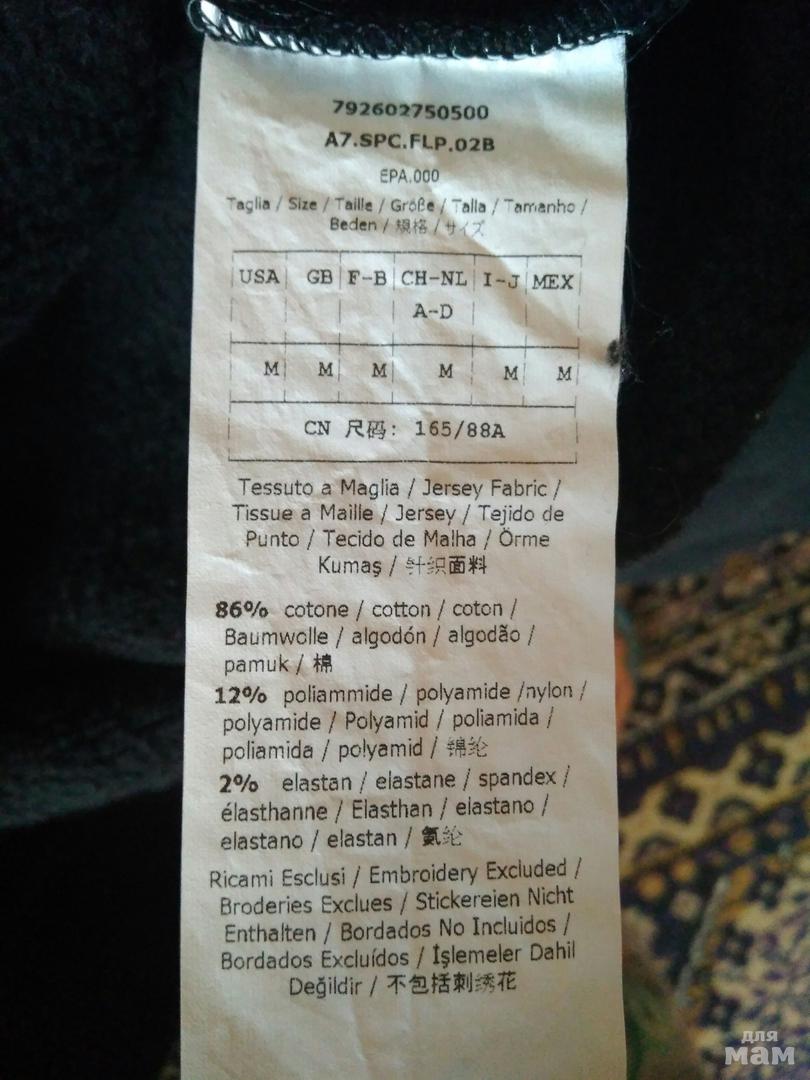 Указан M. но мне кажется лучше тем, кто носит L или как сейчас модно-оверсайз. Под мышками 52см, резинка внизу 46см (+тянется).