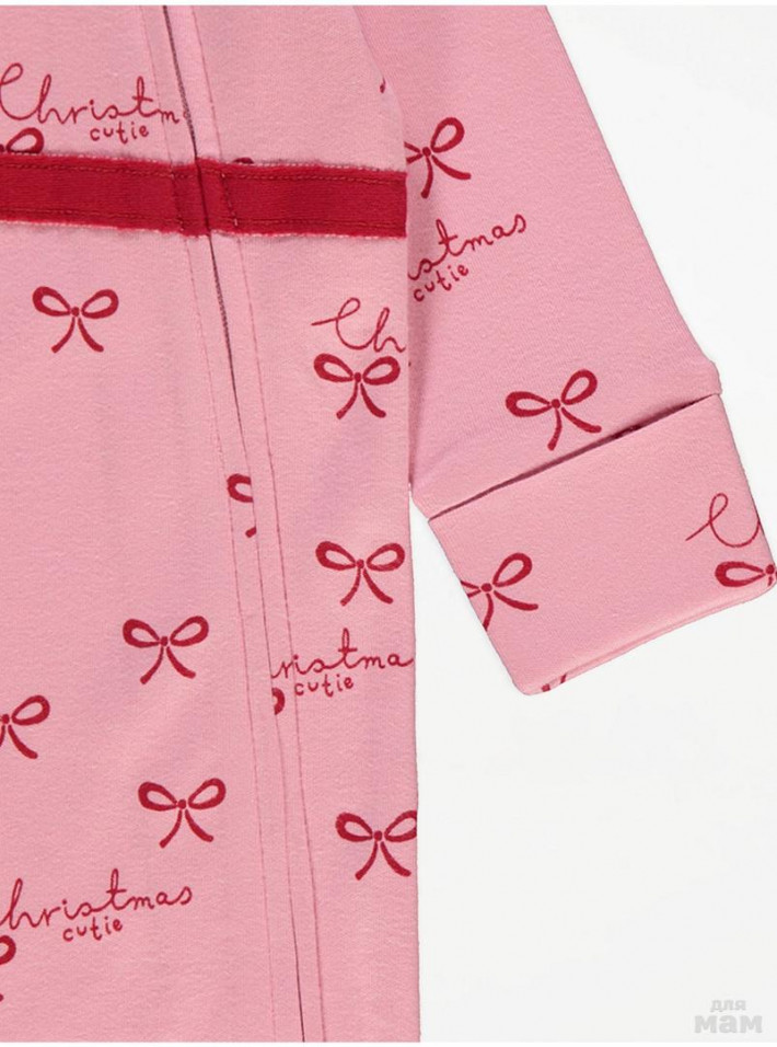 Слип новогодний на молнии "Лучший подарок" фирмы George. Розовый с бантами, впереди красный бант и надпись "Лучший подарок в этом году", Состав 100% хлопок,