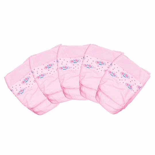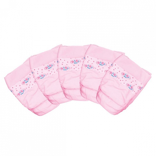 Набор подгузников для кукол от Zapf Creation Baby Born прекрасно подойдет для реалистичной игры.Куклы Baby Born после питья или приема специальной кашки могут писать как живые младенцы, поэтому им так же необходимы подгузники. В комплекте можно найти пять розовых подгузников, которые изготовлены тем же способом, что и детские памперсы.