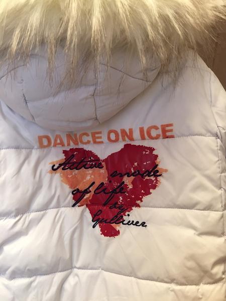 Белая куртка Gulliver размер 116 (лучше от указанного роста до 125 точно). Как и у всех этих курток после первой стирки облезла картинка сзади(( а так состояние очень хорошее без недостатков, все стразики на месте. 1700 руб.