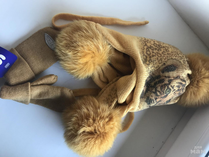 Цвет горчица, на фото чуть светлее чем в жизни. Шапочка+шарф. Шапочка оказалась маломерной, потому особо не удалось поносить. Шапочка двойная