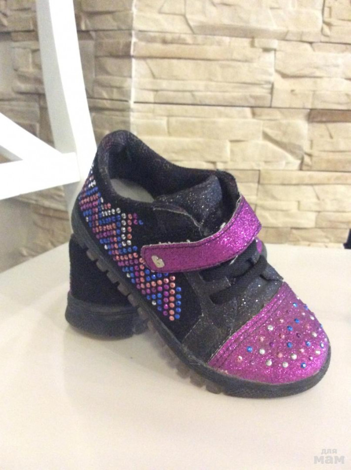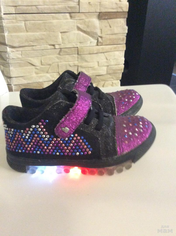 Нарядные кроссовки Bibi на девочку, размер 27, по стелечке 16.8-17см, мыс и бочок в стразах, подошва с мигающими огоньками. Состояние отличное