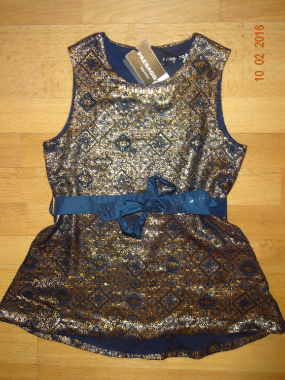 На рост 120 можно носить как сарафан,дальше как тунику. На хлопковой подкладке. Очень красивая!!!Настоящее золотое шитье.Джинсики стрейч подходят идеально!