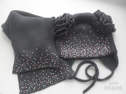Шарфик длиной 1м13 см, шириной 15 см. Меринос, шапочка двойная, очень тепленькая. Состояние отличное. Стразы на солнышке горят.