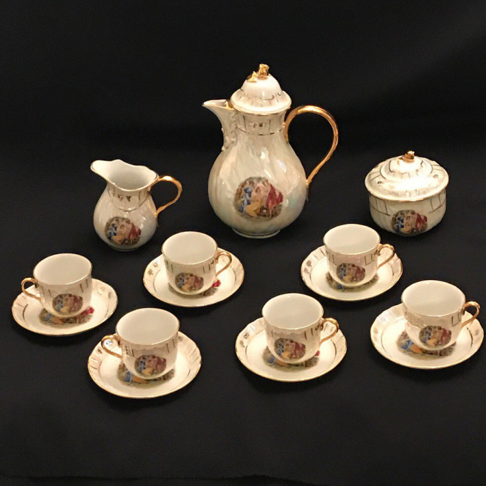 Красивый кофейный сервиз "Мадонна", фарфор, позолота, Чехия, 1990-ые гг. на 6 персон. Состояние коллекционное. Без сколов, трещин и прочих дефектов. Украсит Новогодний стол) Цена 4000 руб