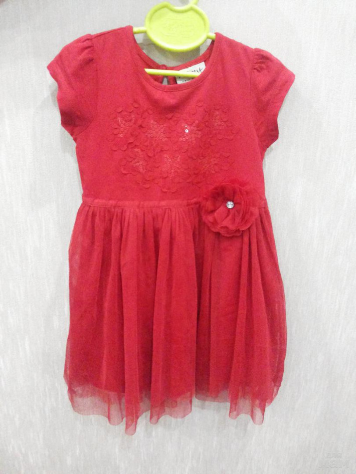 Платье фирмы NEXT р-р 98 до 104 хорошо,цвет насыщено красный как 1 фото.