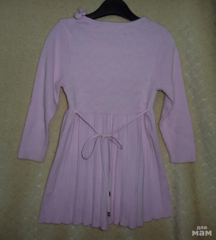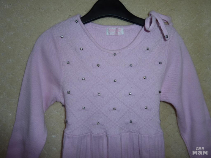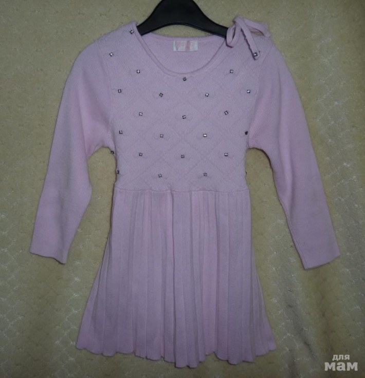 5. Платье розовое с пришивными стразами р.98/104. Тепленькое. Б/у после 1 ребенка, без нюансов. - 400 руб.