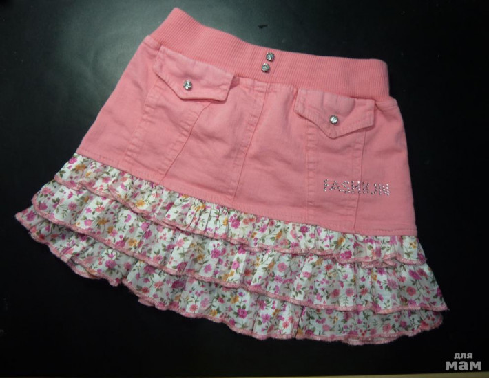 11. - юбка джинсовая кораллового цвета р.104, можно носить с 3-х лет. Германия. Пояс на широкой резинке. - 400 руб.