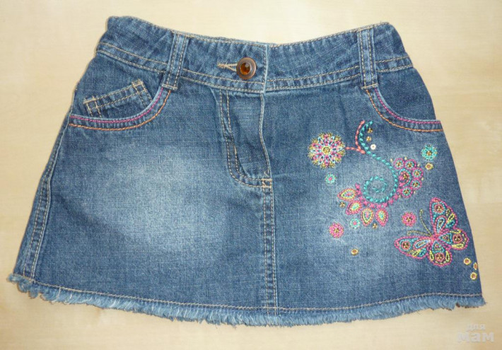 10. НОВАЯ джинсовая юбка с вышивкой р.3/4, Mothercare . Нет картонной этикетки (утеряна). - 500 руб.