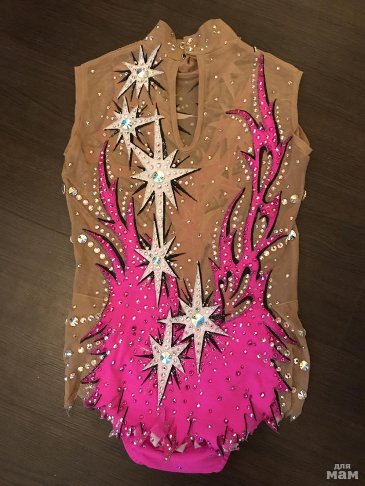 Продаётся купальник для художественной гимнастики! Очень яркий, весь в камнях . Состояние идеальное ( одни руки- шили для себя).Отлично садится на рост 122-130 ( возможно и немного больше, зависит от комплекции девочки).
