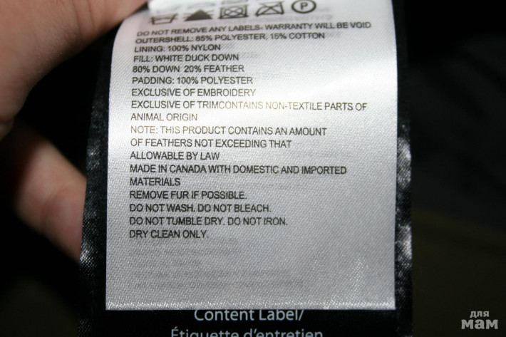Куртка набита мехом белой утки обитающей на территории Канады.