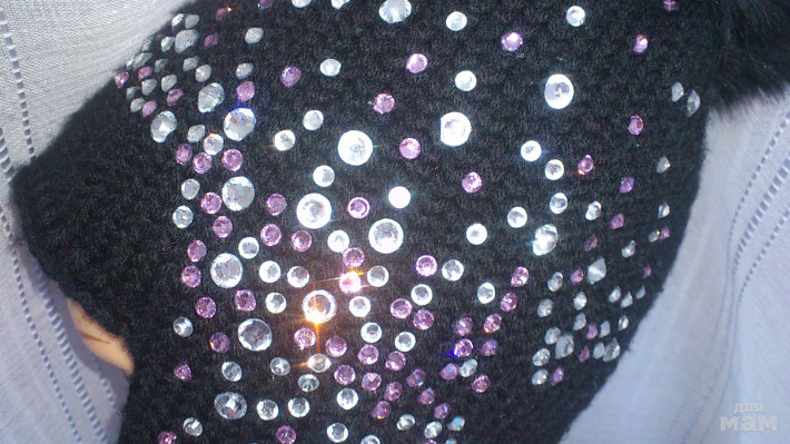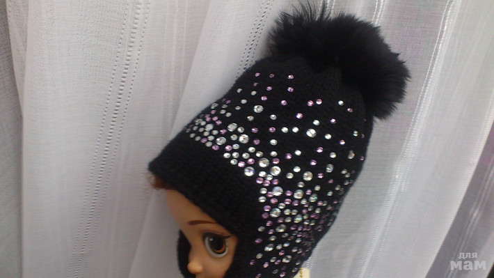 размер 46-48, помпон лиса, стразы сваровски, однослойная мериносовая шерсть