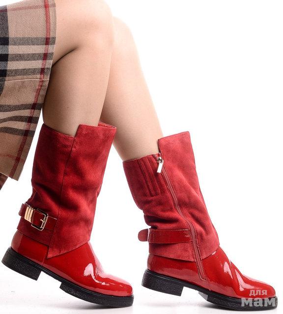 Натуральная кожа (лак)+замша. Подкладка: байка. Каблук 3 см, платформа 2 см, высота 26 см, обхват 32 см.