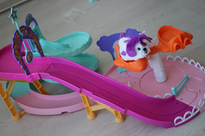 Большой парк развлечений для забавных интерактивных зверьков Furry Frenzies. В нем есть горки, карусель, ворота, разнообразные крутящиеся элементы. Карусель может крутиться при помощи зверюшки.