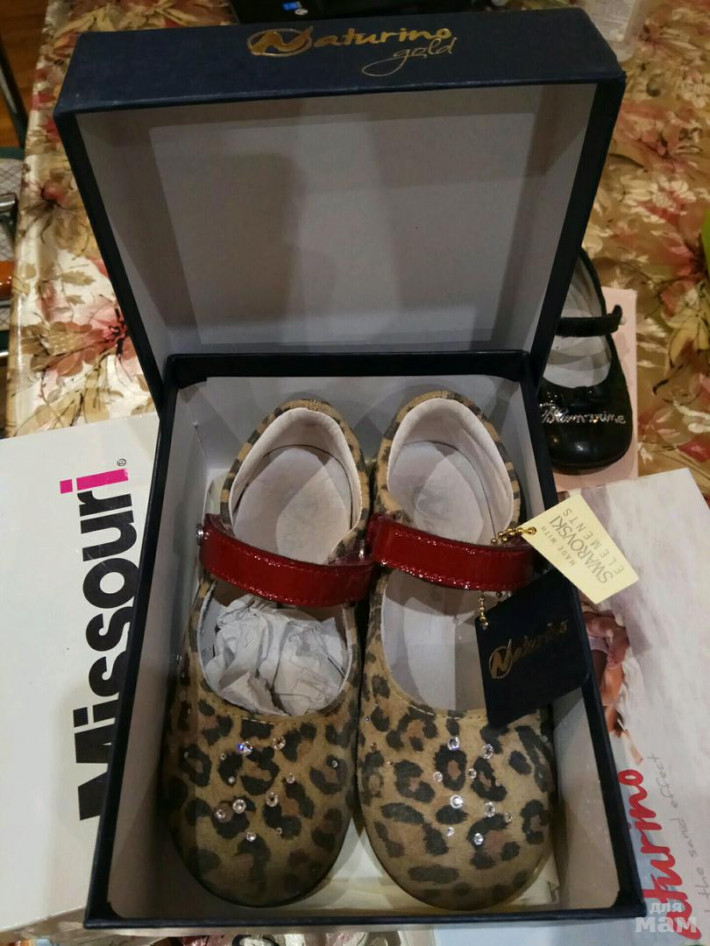 Натурино туфельки лео, серия голд, одели несколько раз, на улице не были. Стразы Сваровски, лаковый ремешок. Размер 25, по стельке 15,5 см.