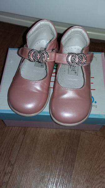 Любимые туфельки Шери,одевали только по праздникам.22 размера(стелька 14,5-15см),мягенькие,украшение на ремешке съемное.Все стразики на месте.Кожа(Италия).Нюанс -на одной туфельке еле заметная зацепка,в носке не видно.2500р