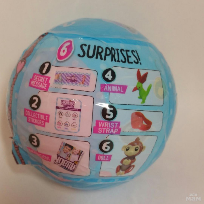 И внутри шарика милая обезьянка, браслетик и маленькое животное.