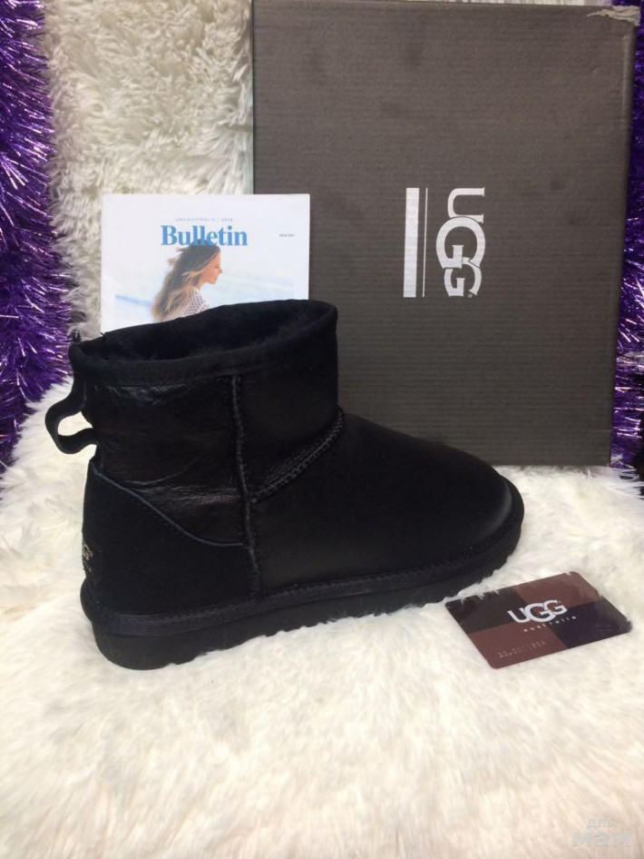 11. Угги 100% натуральная овчина черный кожа - размеры 36,37,38,39,40 - БЕЗ РЯДОВ! Цена 3900 рублей