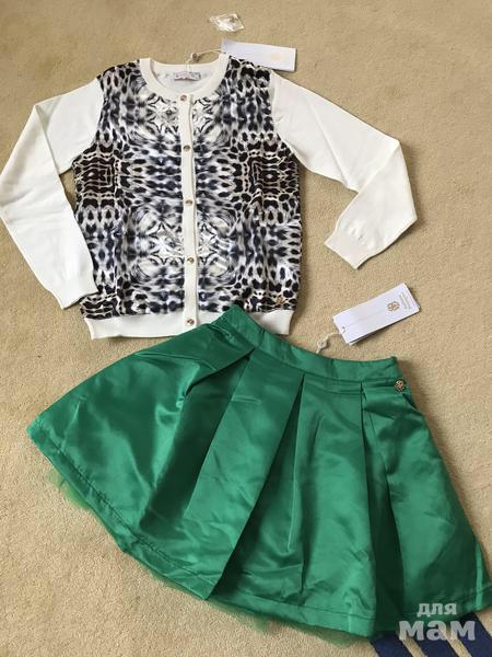 Очень крутая юбка на 140, хлопок с атласным шёлком, идёт в размер! Могу отдать с кардиганом 140, по цене распродажи -50%, + 1100 руб.