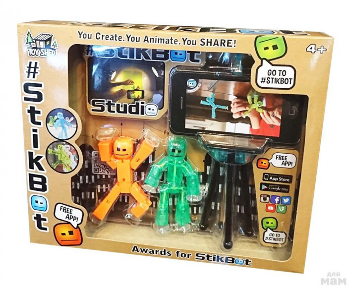 Stikbot необычная фигурка, которая оживает с помощью специального мобильного приложения, которое можно скачать на App Store и Google Play. У фигурки подвижные части, она принимает любую позу, а при помощи присосок крепится на поверхность. Для записи фигурки расставляются на поверхности. Меняя ее положение, ребенок будет записывать несколько разных роликов, а затем монтировать их в один. При помощи приложения можно выбрать разнообразный фон, наложить музыку для будущих видеороликов. Такой набор позволит детям развивать свои творческие способности и воображение.