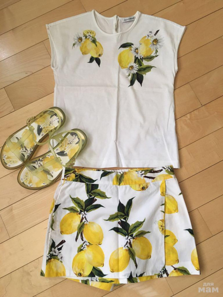 Продажа комплектом : юбка/шорты 4 г , футболка / Пляжки 28 р (18,5 см )
