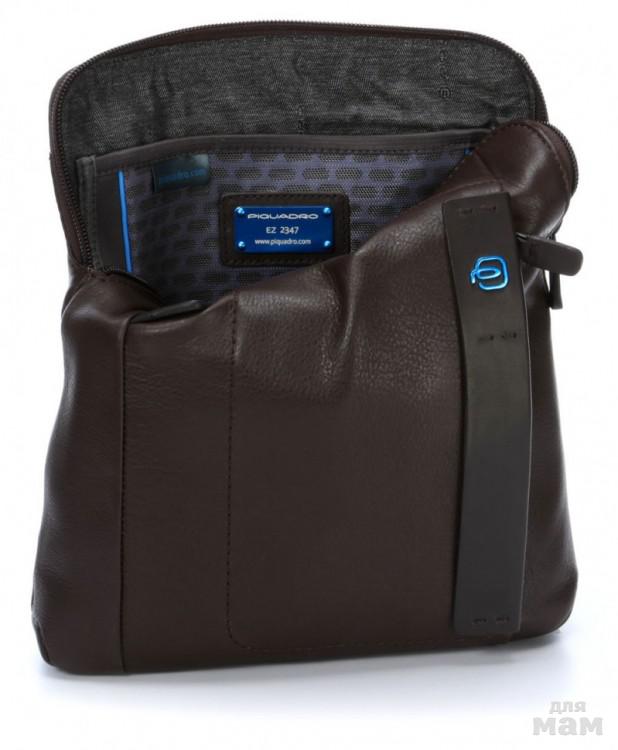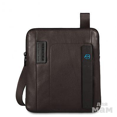 Мужская вертикальная сумка Piquadro из коричневой телячьей кожи.