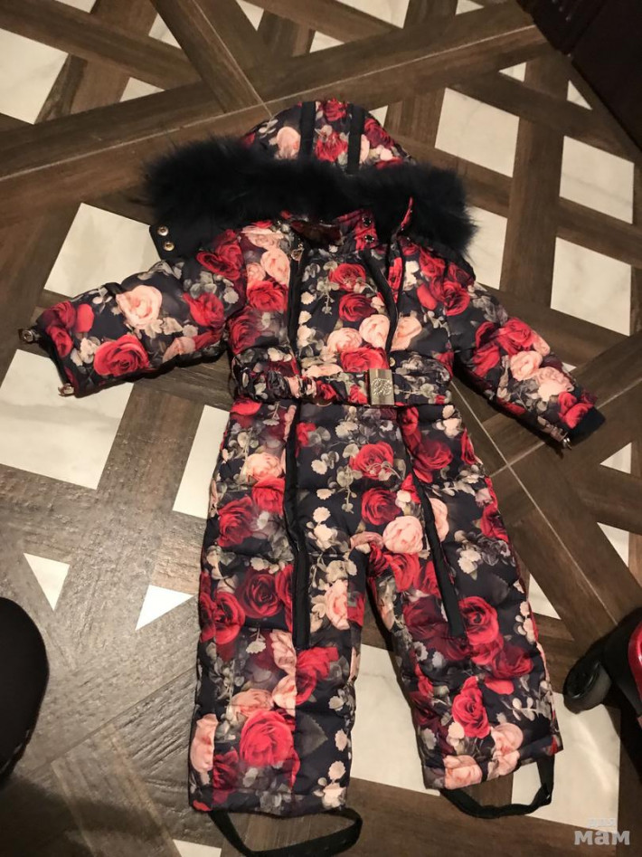 Очень тёплый комбинезон на изософте, в идеальном состоянии,в комплекте пинетки и варежки. Маркировка 9 мес,надевали в 1,4 и в 2.4