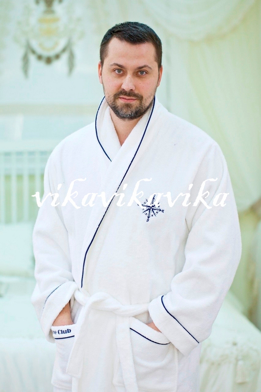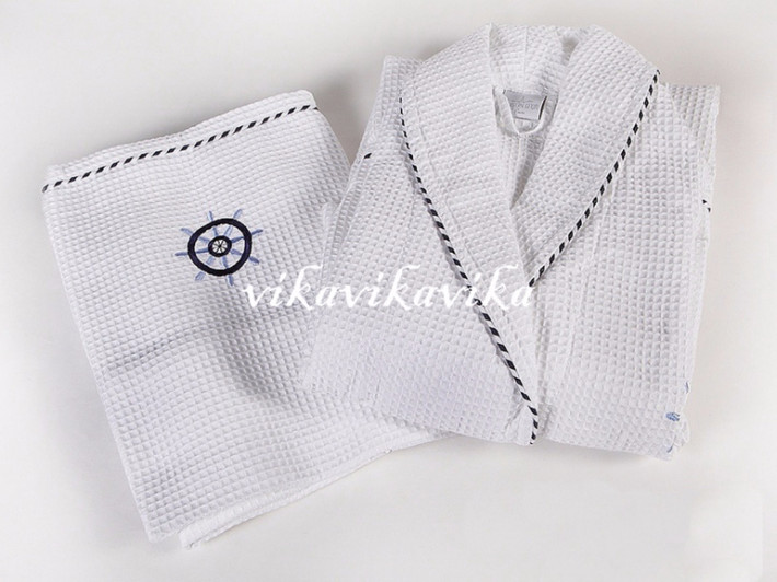1. Набор из вафельного халата и вафельных полотенец высшего класса. От Элитной Французской марки Maison D`or. белый, синий, 6400 р