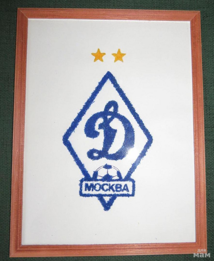 Продам аппликацию из ниток "Динамо".Уникальный подарок на 23 февраля и не только.Идеально впишется в Ваш спортивный интерьер. Размер аппликации формат А3 (30*40), работа продается в рамке как на фото. Ручная работа. Встреча м.Лермонтовский проспект.