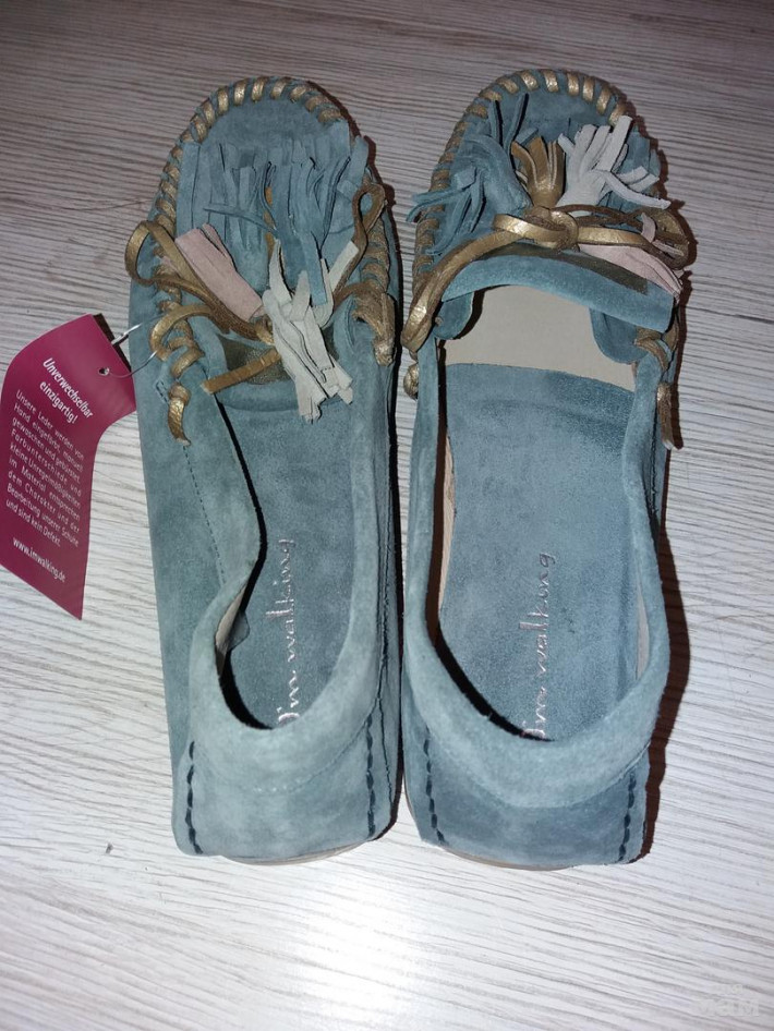 Новые мокасины I'm walking р.40, длина стельки 25,5 см, цвет: серый, натуральная замша, подклад нат.кожа. Подойдут на среднюю и узкую ногу.