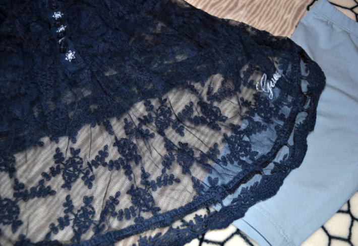 GUESS jeans. 4Т. Сет из двух вещей - кружевная туника и короткие легинсы-велосипедки.
