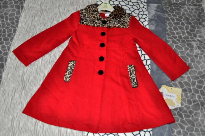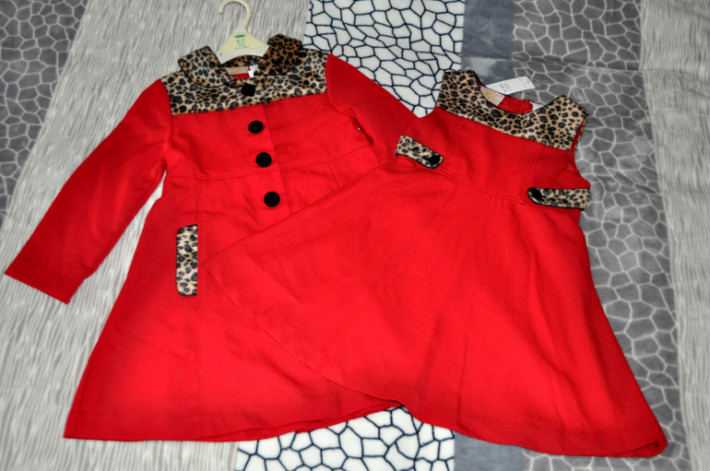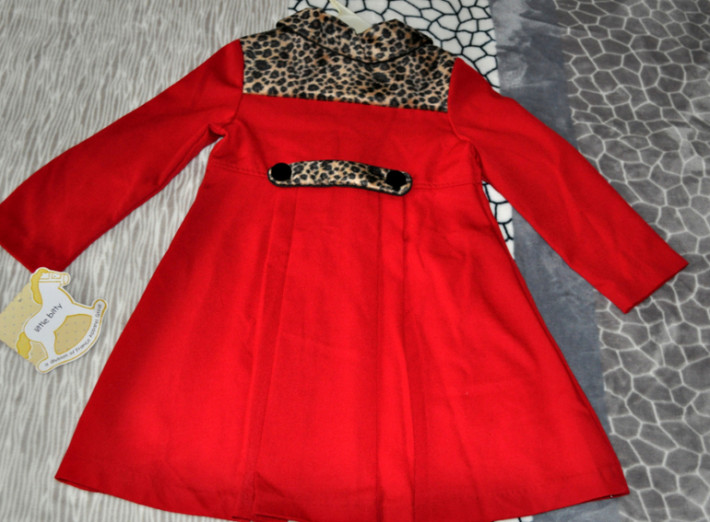 Двойка LITTLE BITTY (USA) 4Т. Тонкое пальто на начало осени и платье. Очень нарядный и стильный комплект для маленькой леди!))) Отделка ворсистым (под короткий искусственный мех) леопардовым принтом. Пуговицы из бархата.