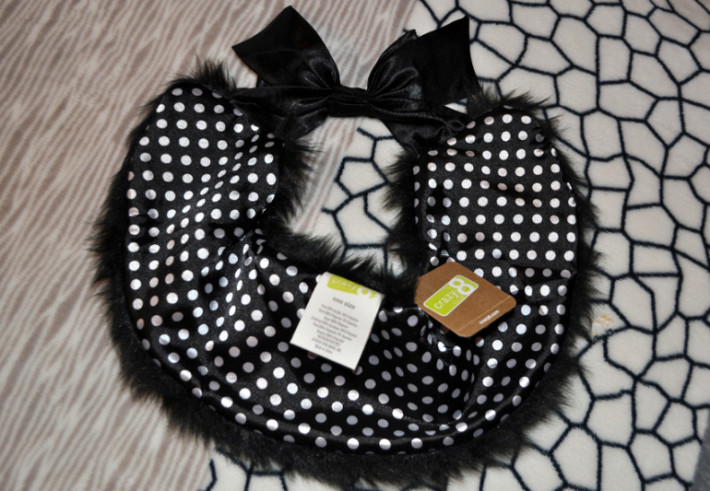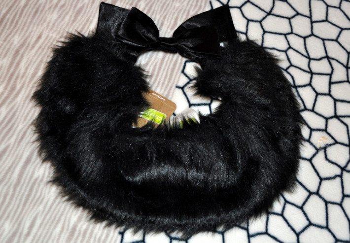 Декоративный воротник CRAZY 8. Размер единый. Подклад горох, лицо - искусственный мех. Застегивается на липучке прикрытой красивым бантом.