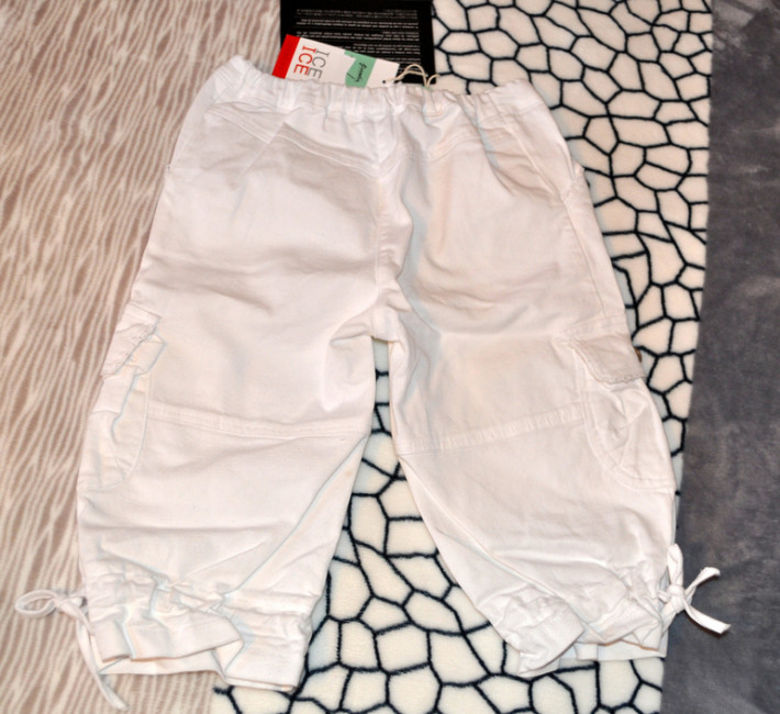 Джинсовые бриджи ICEBERG. 100% cotton. Маркировка 6 лет. Примерно в размер и идут, но на пухлика не подойдут, узковаты. Приехали с Итальянского Екса, не подошли. Сзади пояс на резинке, 4 кармана. Внизу штанины утягиваются.